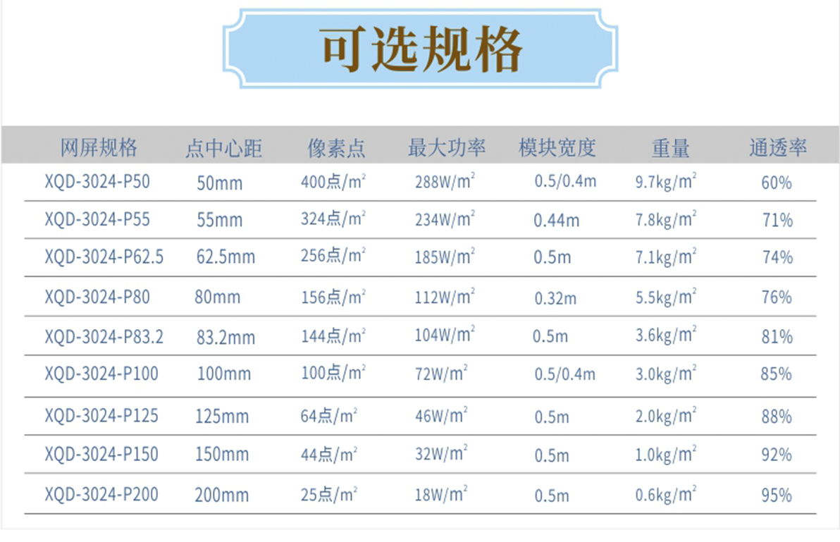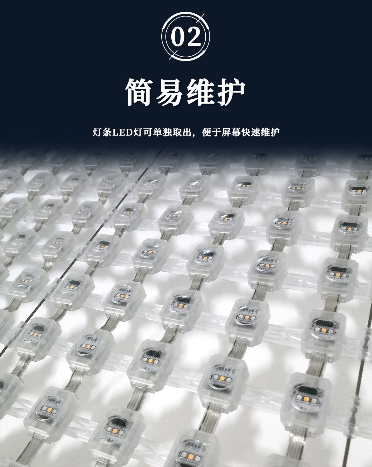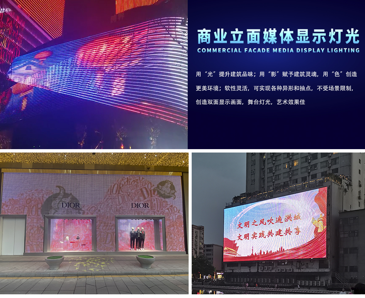 LED透明網(wǎng)格屏,具有透明,靈活,輕便, 易于安裝和維護(hù)的特點(diǎn),適合于多種安裝方式, 比如彎曲,折疊,卷繞,懸掛等,做為一個(gè)整體 透明LED網(wǎng)格屏.極具藝術(shù)性和創(chuàng)造性,可以自由 組合成各種形狀。廣泛應(yīng)用于建筑立面或天幕等 的大型屏幕的制作。