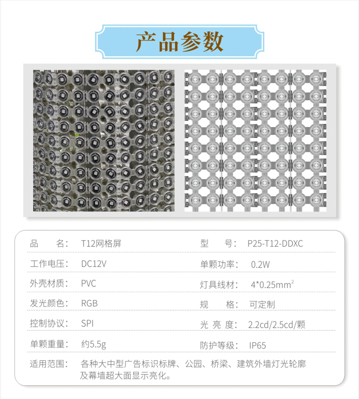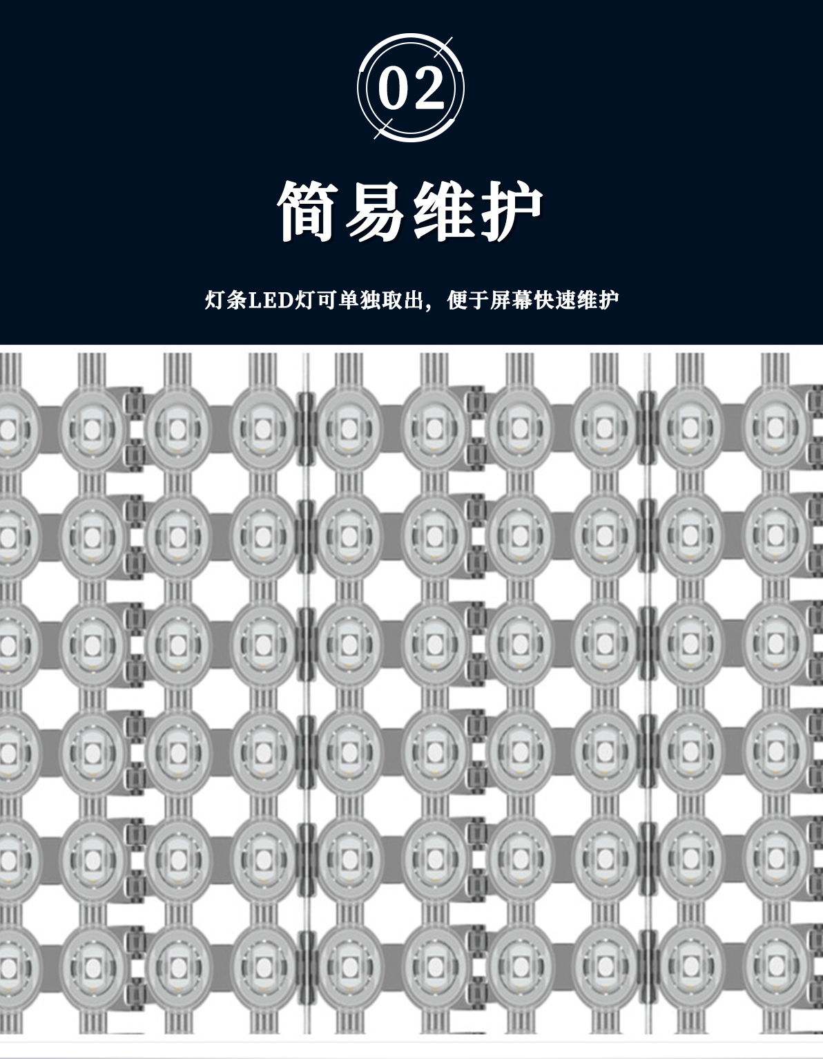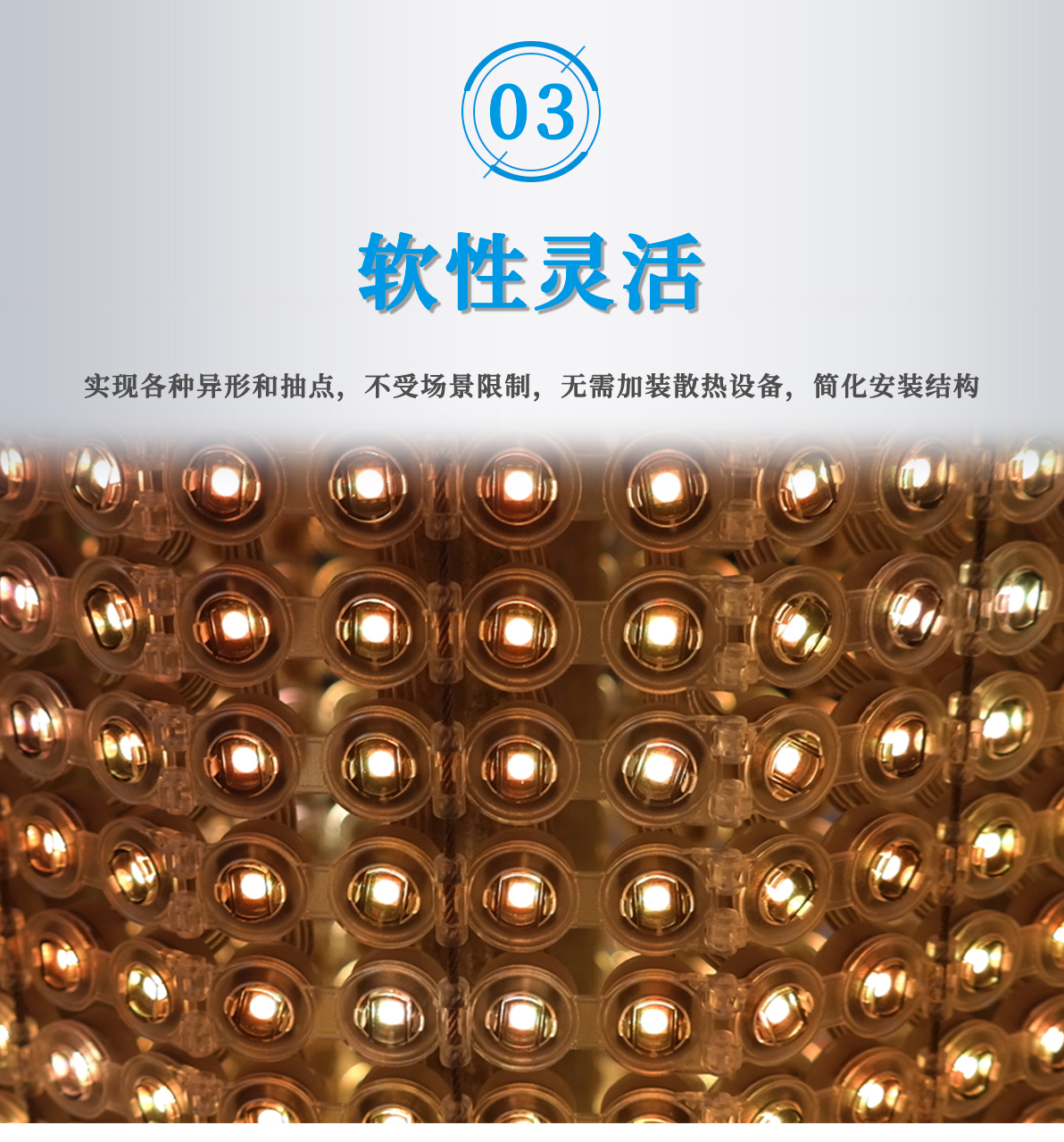 1.采用加大線徑點(diǎn)光源,支持更遠(yuǎn)距離的供電和信號(hào)傳輸方式。 2.安裝方式靈活:產(chǎn)品尺寸小,重量輕,配合軟性鋼絲繩, 可以實(shí)現(xiàn)靈活多樣的安裝方式。 3.具備壞點(diǎn)續(xù)傳功能,即使其中一個(gè)像素點(diǎn)損壞不會(huì)影響后續(xù)像素點(diǎn)的 信號(hào)接收,最大程度降低產(chǎn)品故障率。 4.多種間距選擇,靈活控制項(xiàng)目成本