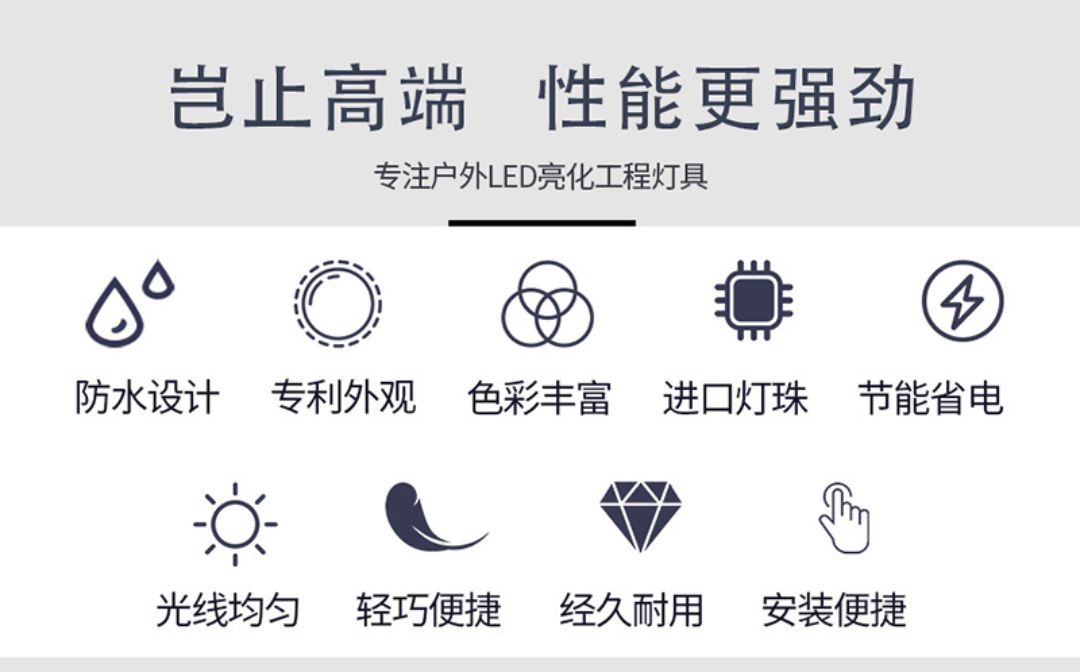 產(chǎn)品特點(diǎn): 1.采用結(jié)構(gòu)防水設(shè)計(jì),散熱性能好,防護(hù)等級(jí)高; 2.采用遮光板設(shè)計(jì)方案,安裝場(chǎng)合適應(yīng)性好; 3.多角度透鏡可選,體積小,外觀精致,室內(nèi)外通用; 4.鋁外殼材質(zhì),外觀精致,美觀。散熱性能更好,產(chǎn)品壽命長(zhǎng)。 5.可適用于樓宇亮化,建筑物、橋梁等亮化照明燈具。